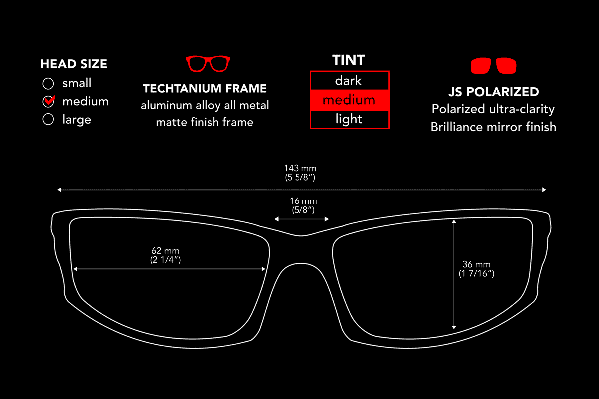 The BULLET sunglasses feature ultra light weight yet incredibly strong full frame aluminum magnesium alloy frames. Highest quality spring hinges make these the perfect comfort fit for most and face shape and head size, both relaxing the fit and keeping a very light tension no matter your head size or shape. The lenses are premium JohnnyShades Polarized for enhanced clarity and contrast, as well 100% UV protection from the suns harmful rays.