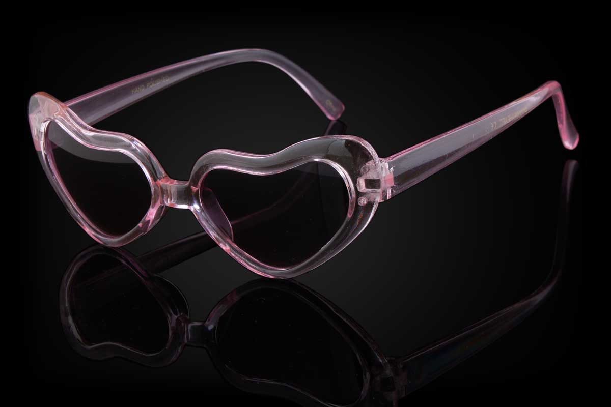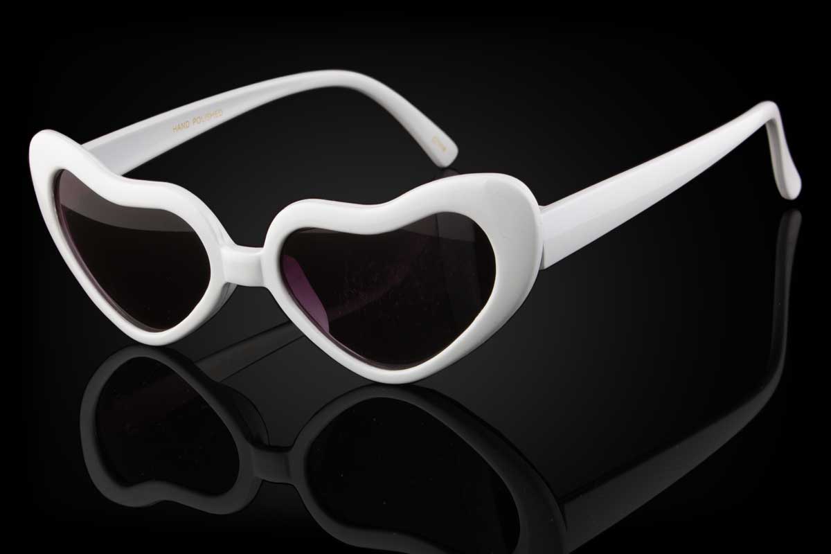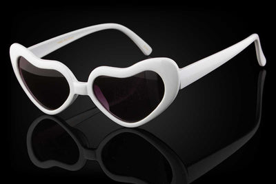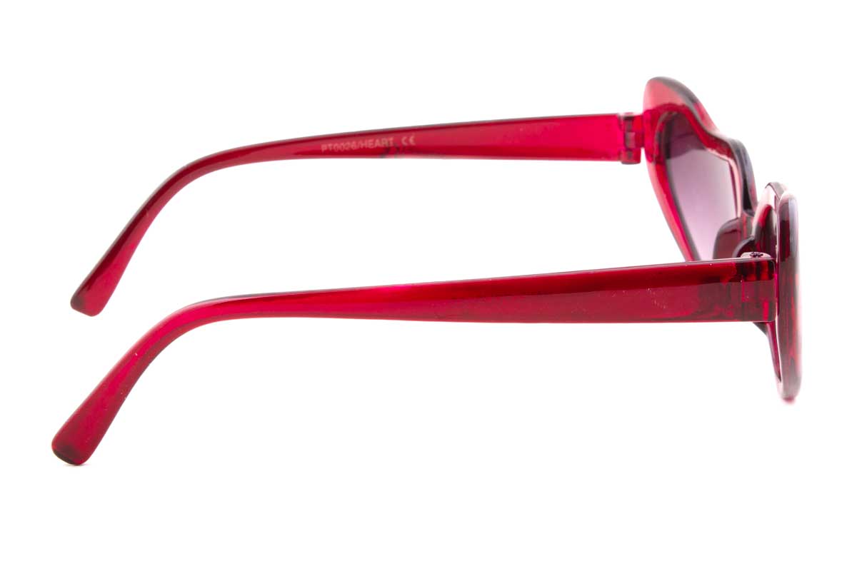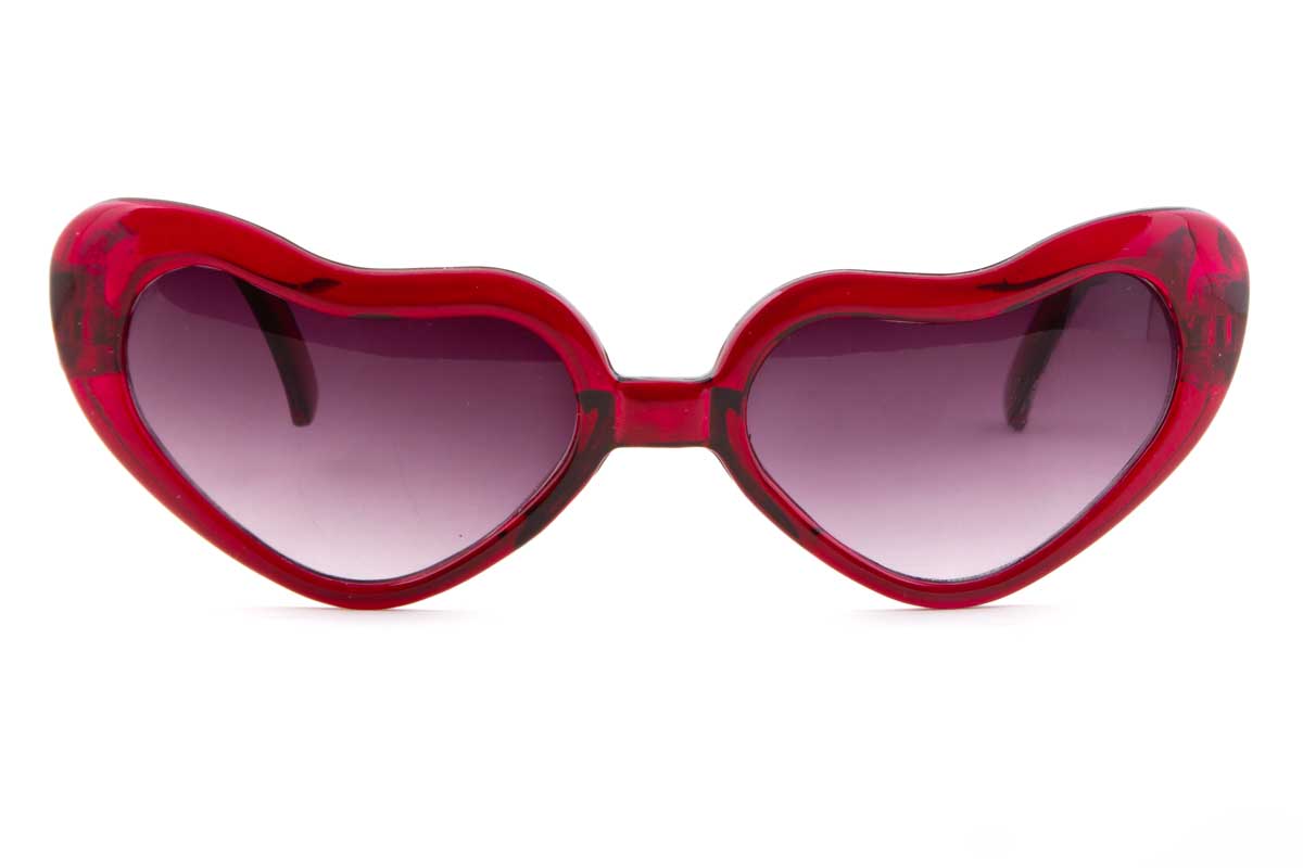 The LOVEBIRDS sunglasses feature heart shaped lenses that tilt upwards with a cateye appearance. They offer 100% UV protection.