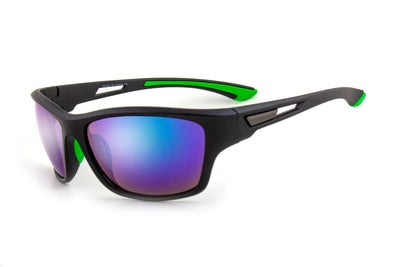 You won't be able to BELIZE your eyes in these colorful sport shades featuring rubber nose pads for comfort and grip as well as the ever popular rectangle lens shape. The close fit wrap design will help to keep your eyes protected even in high wind situations.