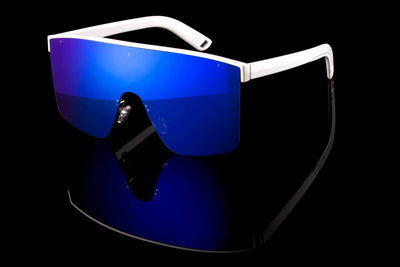 The VEGA one piece sunglasses are a funky pair with great coverage. These shades have a shatter resistant polycarbonate lens and high quality floating nose pieces.